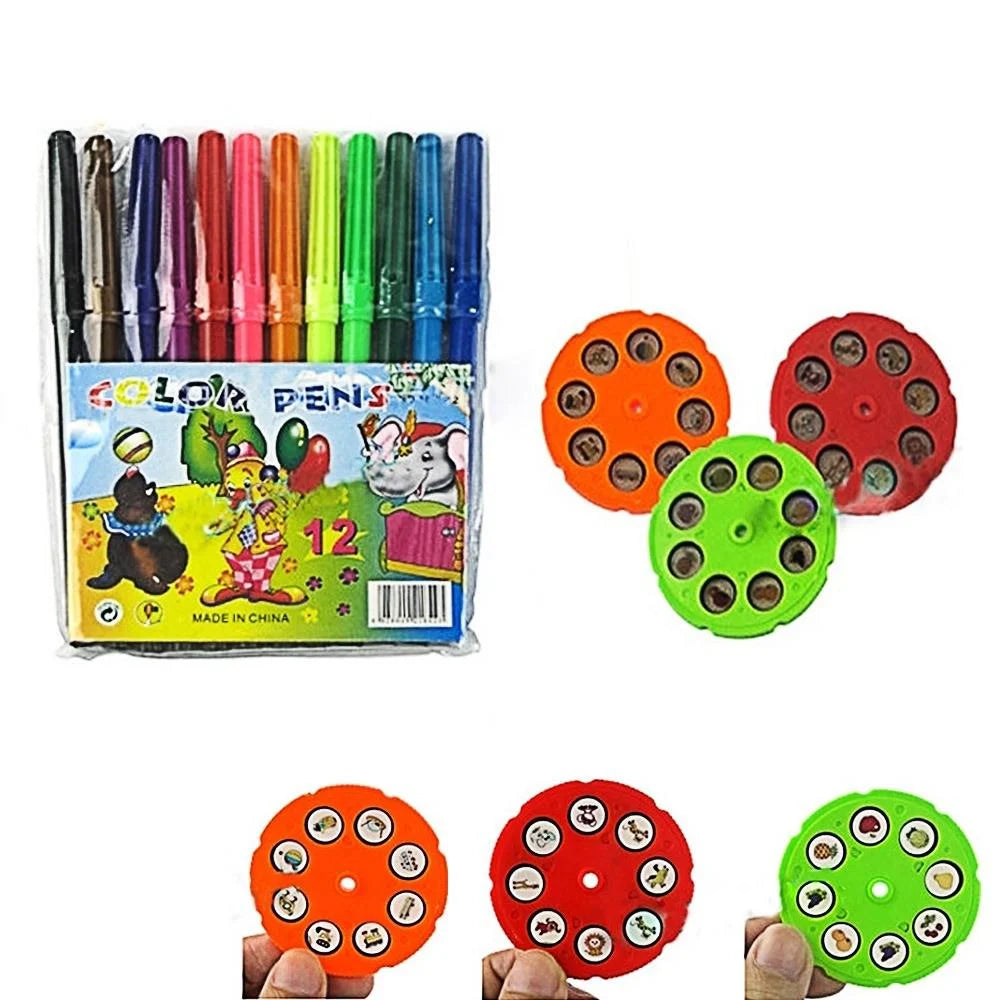 • Комплект: 3 пластини з 8 слайдів, 12 фломастерів, альбом для малювання