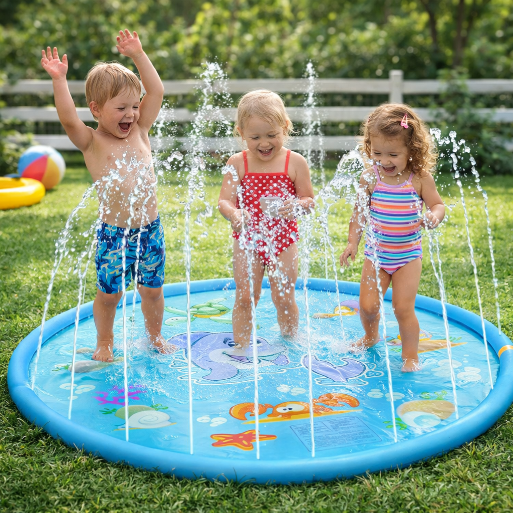 Просто під’єднайте килимок до садового шланга — і він перетвориться на фонтан, що дарує дітям масу задоволення. Безпечна глибина робить його ідеальним для малюків, а міцний ПВХ-матеріал витримує активні ігри. Яскравий дельфін на поверхні додає захоплення та візуальної привабливості. Чудовий вибір для подвір’я, дачі або пляжу!