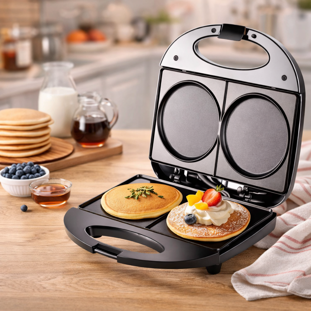 Компактний та легкий дизайн робить її зручною у використанні та зберіганні, перетворюючи процес приготування на швидкий та ефективний досвід. Завдяки потужності 750 Вт, поверхні швидко нагріваються, що дозволяє майже одразу розпочати приготування. Хоча вона не має регульованих температурних режимів, її продуктивність оптимальна для приготування млинців та інших страв.