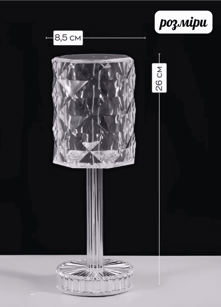 Настільна кришталева лампа з сенсорним керуванням та 3 видами кольорів свічення – це вишуканий та елегантний предмет освітлення, який збагатить ваш інтер’єр своєю красою та функціональністю.