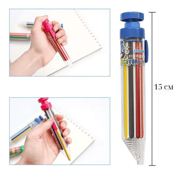 Зустрічайте наш олівець для малювання — справжню знахідку для дітей та всіх, хто любить креатив! В одному корпусі — 8 яскравих кольорів, які легко змінюються простим рухом.