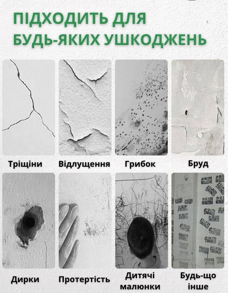 Бажаєте відремонтувати пошкоджені та тріснуті стіни як професіонал, швидко та ефективно? Рішення – ця паста для швидкого ремонту стін, яка дозволить вам швидко виконати всі необхідні ремонтні роботи та швидко отримати чисті стіни. Незалежно від того, чи хочете ви відремонтувати невеликі тріщини, подряпини або більшу площу штукатурки, що відпала, цей продукт зможе зробити це всього за кілька хвилин.