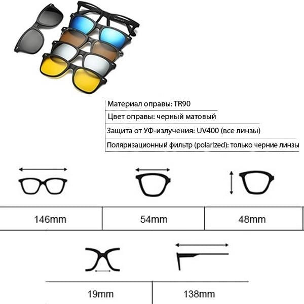 Сонцезахисні окуляри 5 в 1 зі змінними лінзами на магнітах