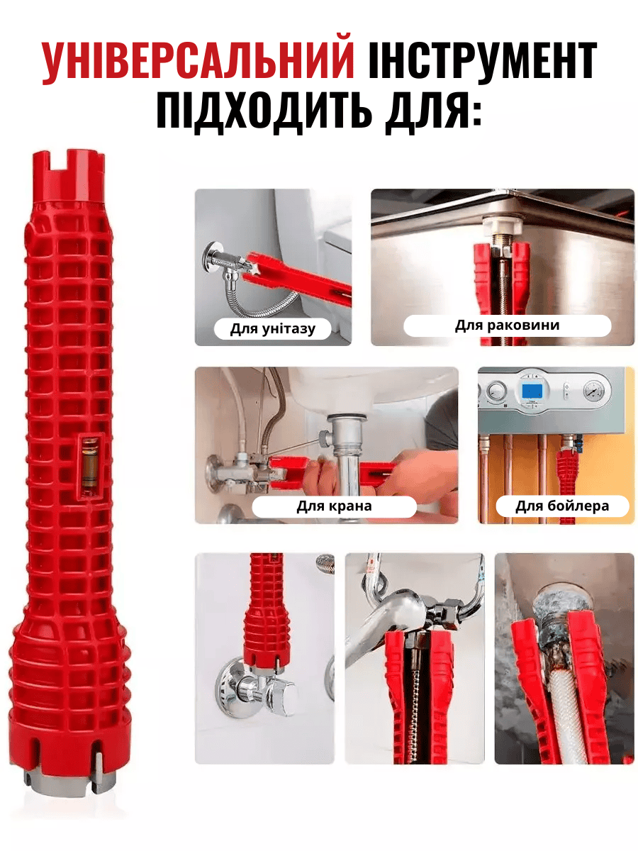 Універсальний багатофункціональний ключ – це важливий інструмент для будь-якого домовласника чи сантехніка. Призначений для ремонту та складання сантехнічного обладнання на кухні та у ванній кімнаті, він забезпечує широкий спектр застосування.