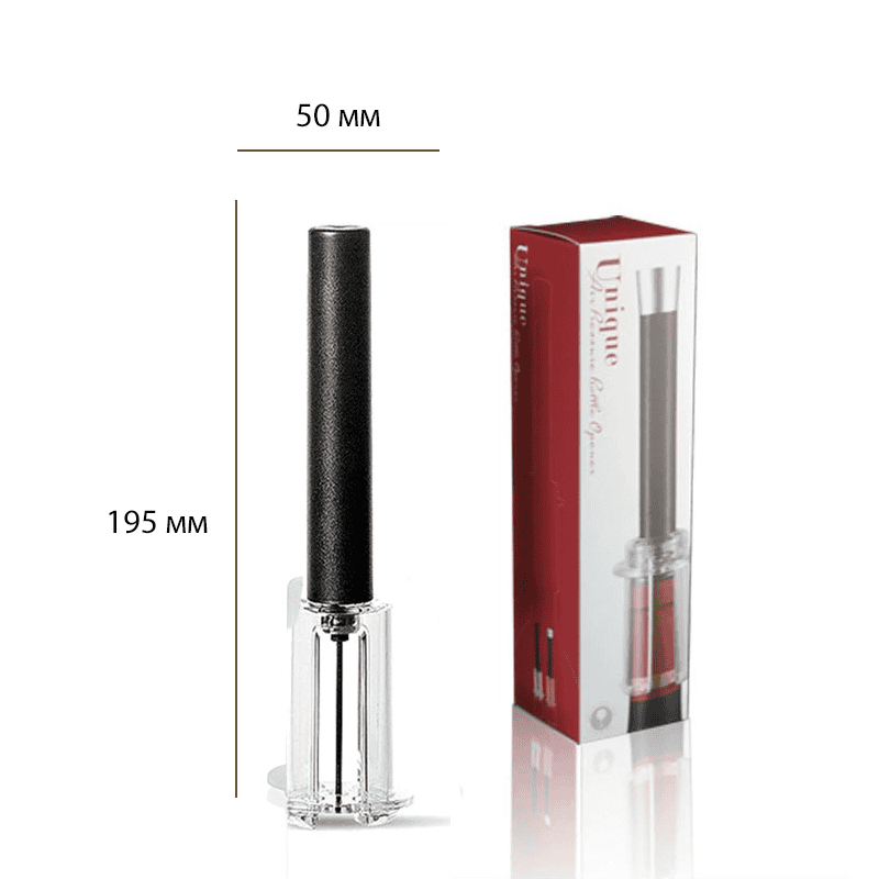Цей стильний гаджет дозволяє відкрити пляшку за кілька секунд, без ривків, крутіння чи зайвих зусиль. Пробка витягується акуратно та повністю, залишаючи вино неушкодженим і готовим до насолоди.