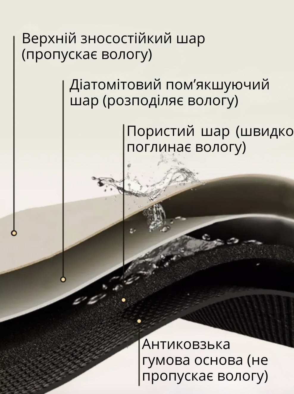 Швидкосохнучий килимок може вбирати воду та інші рідини, ніж забезпечити порядок та чистоту на столі. Протиковзка текстура на звороті килимка має сильну абсорбційну силу, щільно прилягає до столу, тому його не легко зрушити.